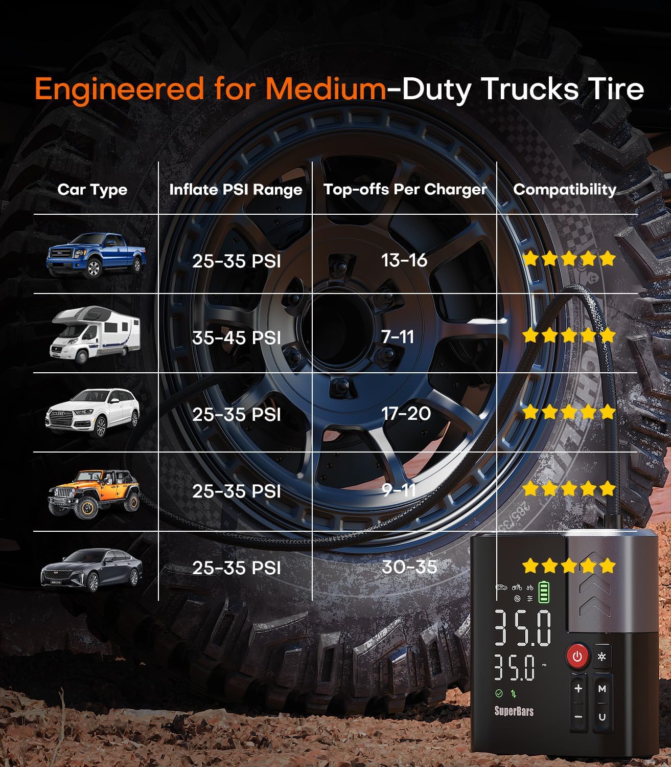 Simple push‑button design makes inflation quick and stress‑free — just plug in, press start, and watch the pressure rise! 🎯👍